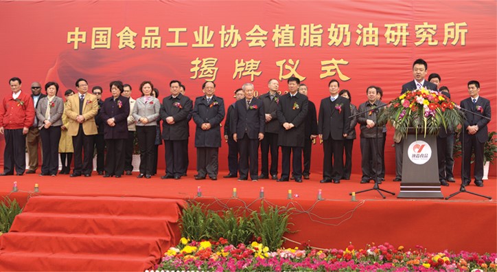 中國食品工業(yè)協(xié)會植脂奶油研究所在頂益成立揭牌儀式王文哲、沈篪、宋全厚、李奇、馮永農(nóng)、李馳、周福蓮、周古城出席論壇并參加揭牌