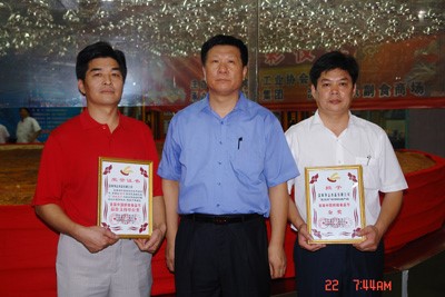 中國食品工業(yè)協(xié)會會長王文哲先生和公司董事長陳軍先生、營銷總經(jīng)理陳銘先生合影